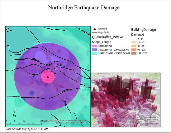 In this project, we downloaded shapefiles about the Northridge Earthquake (1994). Introduction to ArcGIS Pro. Analysis was performed about damage related to the epicenter of the quake.
